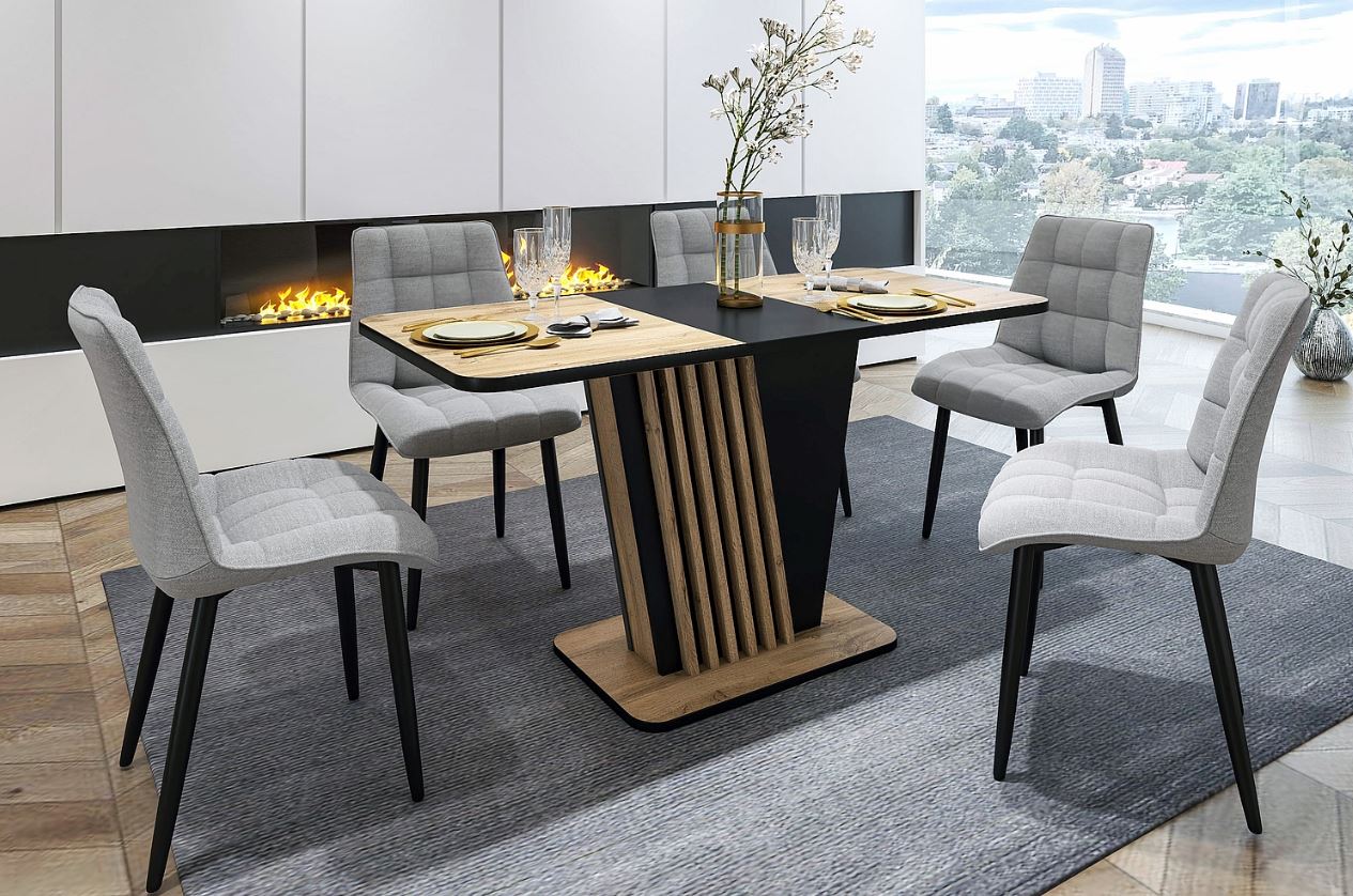 Rozkladací stôl Nevio – rozmer 125-170/75/76cm, prevedenie lamino dub artisan/čierna alebo dub cremona torro/kašmír. Cena 239€.